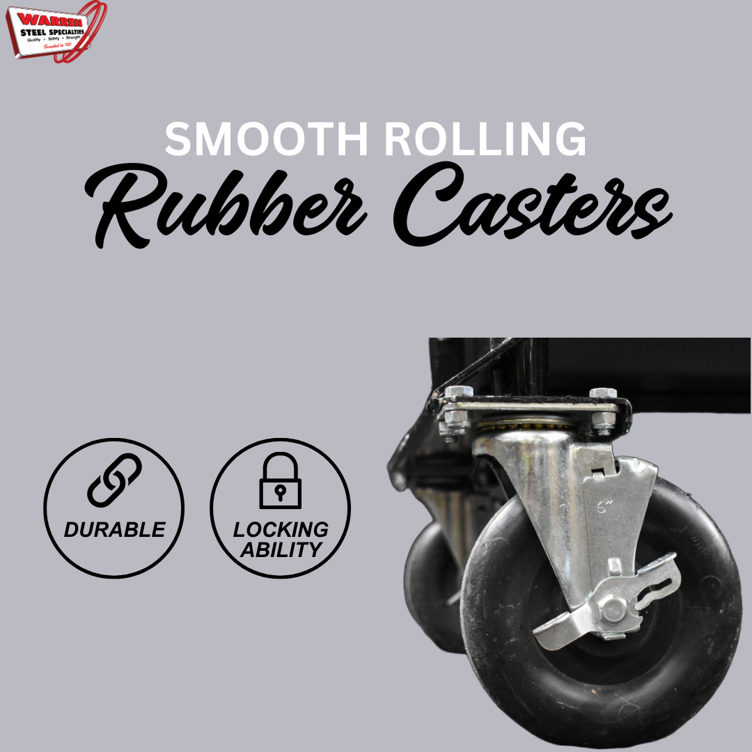 - COMPLETE SET: Equipped with (4) 6" x 1" rubber rotary casters (2 swivel with brakes and 2 standard casters) for easy operation, smooth rolling, and safe placement.